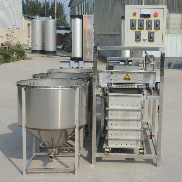 煮浆工序不仅决定了豆制品的口感和风味,对干豆腐机出品率也有一定的影响,豆浆煮不熟,豆蛋白就不会产生热变性,就不会与凝固剂发生反应,从而随黄浆水流失掉,煮的时间太长就会有焦糊味,影响干豆腐的口感;可以用煮浆锅搭配柴油锅炉使用,经济环保,豆浆口味较好。