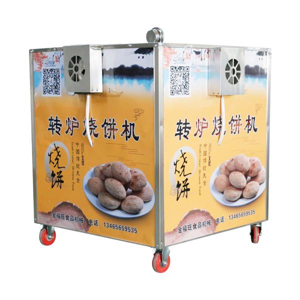 的全自动烧饼机,只要将和好的面团放入料斗,制坯装置就可以自动把面团分成小剂子,再经过像摩天轮一样旋转的加热定型装置,烤制成美味的烧饼。